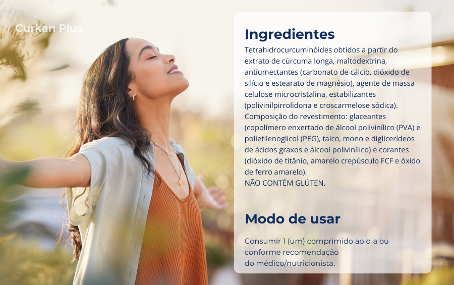 Suplemento alimentar à base de tetrahidrocurcuminóides, com ações anti-inflamatórias e antioxidantes que auxiliam no tratamento e prevenção de diversas doenças. Curcumin Reduct® é uma forma reduzida da curcumina, muito mais biodisponível e biodinâmico, com 95% de concentração do principal ativo da curcumina, oferece efeitos mais rápidos e potentes.