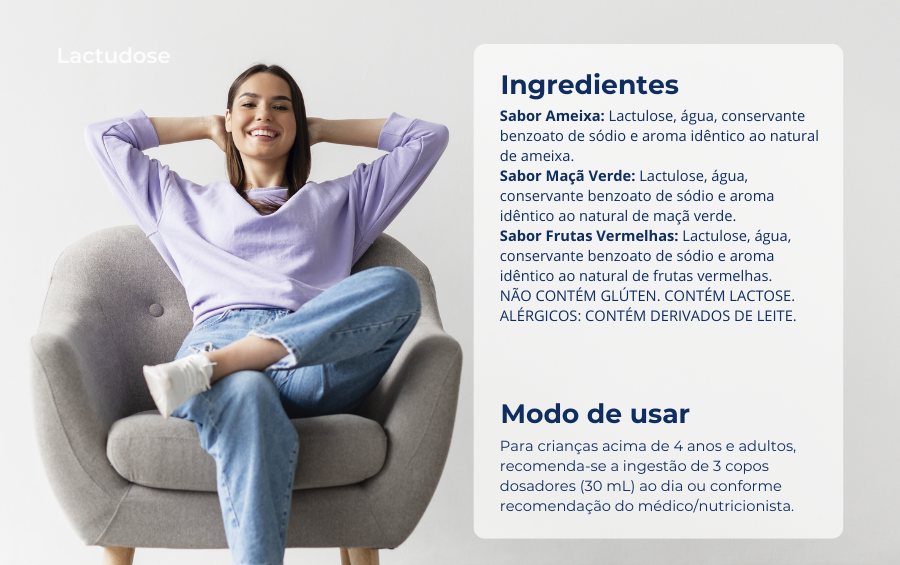 Lactudose® é indicado para auxiliar no funcionamento do intestino, contribuindo para a redução do desconforto causado pela constipação intestinal
