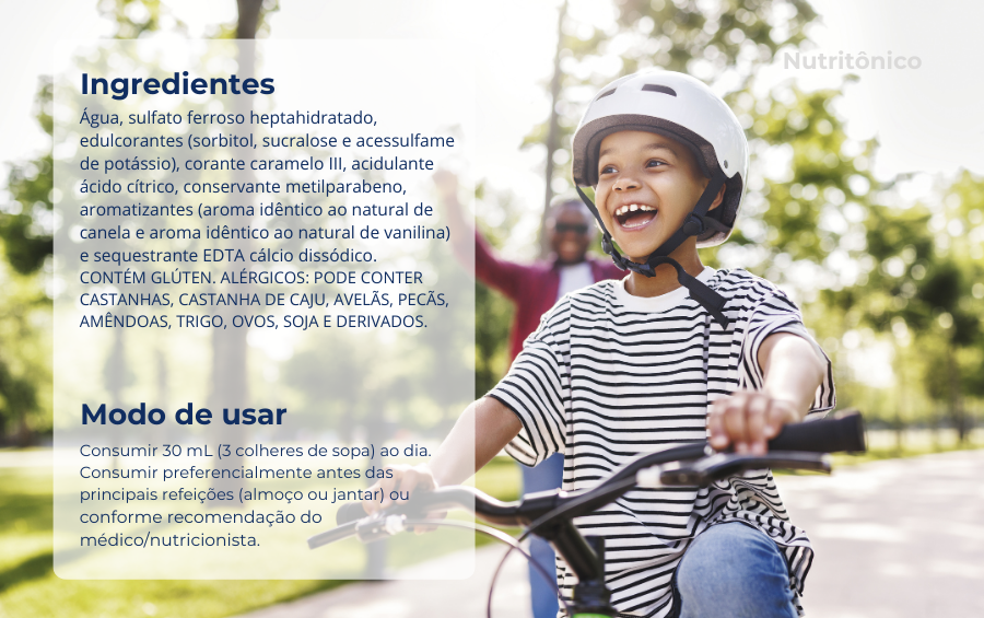 Auxilia na prevenção das anemias carenciais, nos estados de deficiência de ferro em geral e em dietas inadequadas. Suplemento a base de ferro. Atua na prevenção da anemia ocasionada por falta de ferro e alivia os seus sintomas, como sonolência, cansaço, perda de apetite e queda de cabelo.