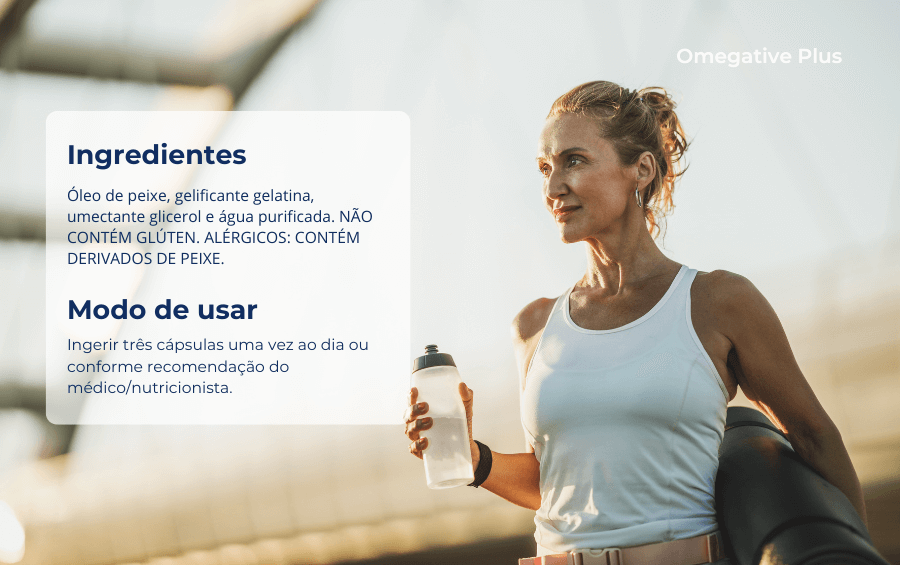Ômega 3 concentrado com 990mg de EPA e 660mg de DHA. Omegative Plus auxilia na redução dos triglicerídeos, no controle da pressão alta e na proteção contra doenças cardiovasculares. Também ajuda no fortalecimento da imunidade, no aumento da concentração e na manutenção da memória.
