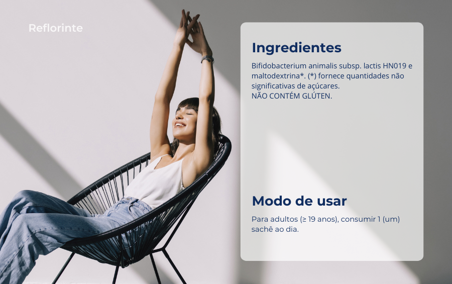 Reflorinte® é um suplemento probiótico indicado para a restauração da flora intestinal, controle da diarreia, alívio da constipação e do desconforto abdominal. Contém bactérias benéficas para a saúde gastrointestinal, conhecidas como